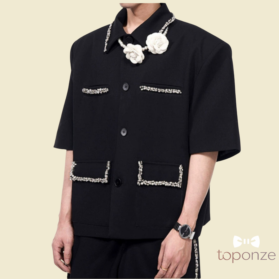 The Black Deluxe Shirt impresses with its pearlescent details on the collars and pockets, conveying attitude and refinement in every seam.