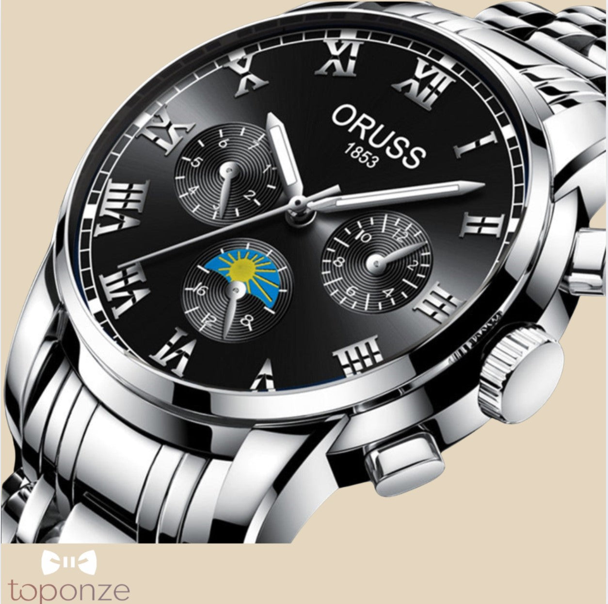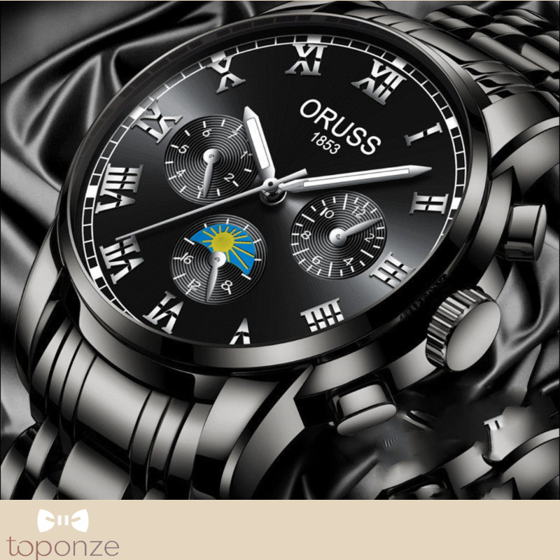 Relógio ORUSS 1853 — Luxo Clássico em Aço Preto