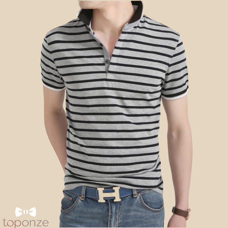 Este pólo masculino é a combinação perfeita entre estilo casual e elegância atemporal. O padrão às riscas pretas e brancas dá um toque moderno e versátil, ideal para qualquer ocasião — desde um passeio descontraído até um encontro informal.