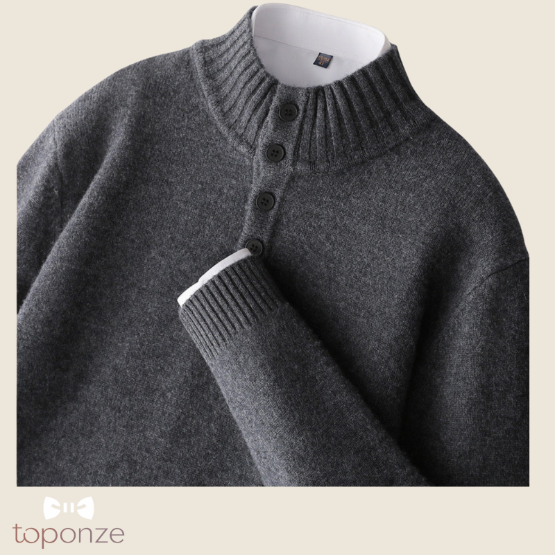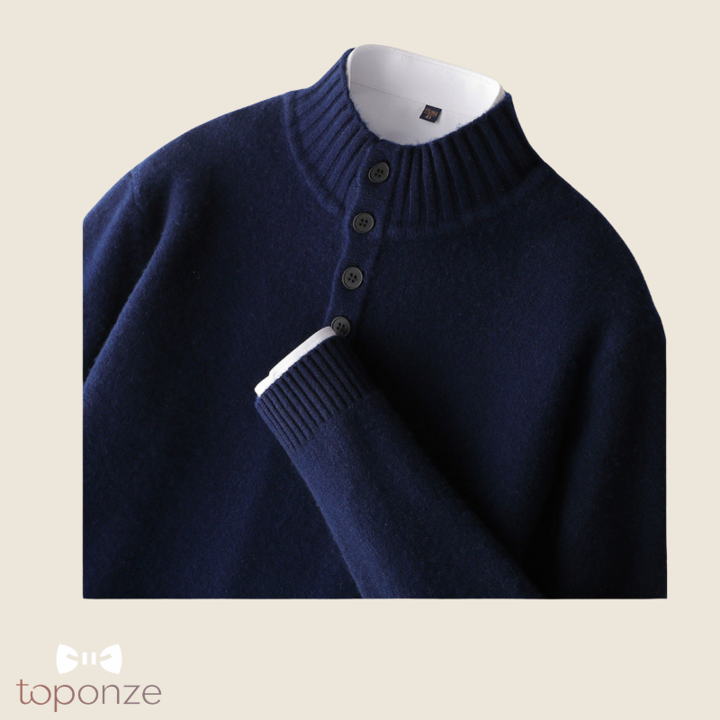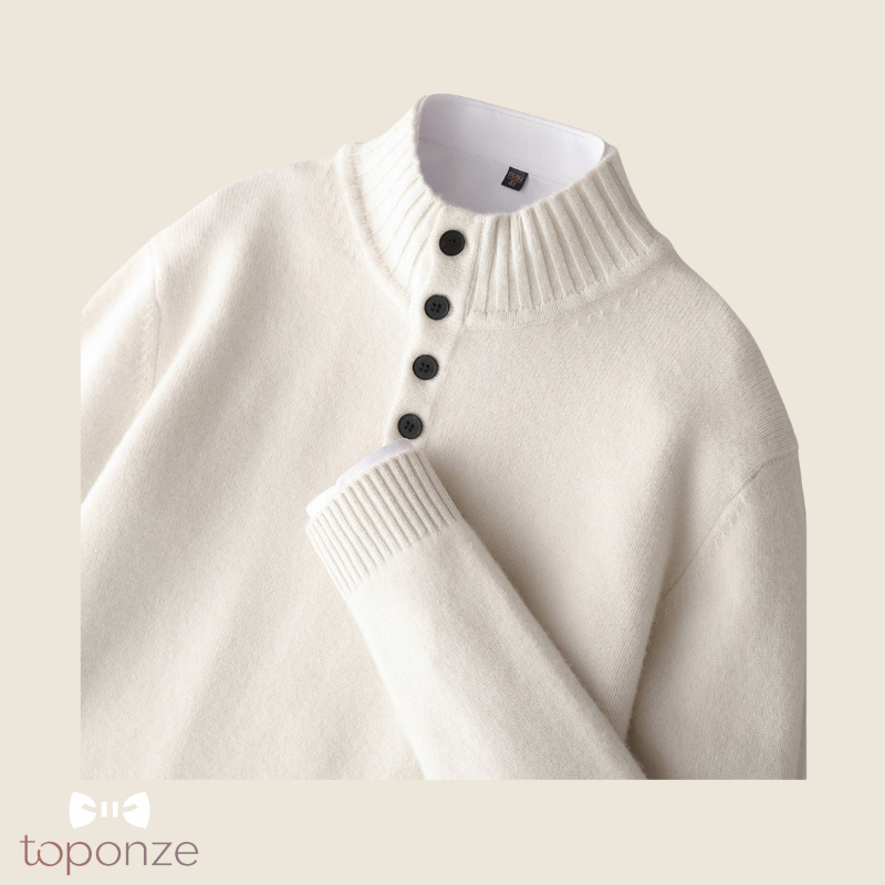 Camisola Premium de Malha com Gola Subida e Botões – Estilo Elegante Masculino